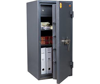 Сейф VALBERG ГРАНИТ 90Т №34367 - вес: 205 кг, цвет: графит структурированный, высота (внешняя): 90 см, ширина (внешняя): 44 см, глубина (внешняя): 43 см, высота (внутренняя): 82 см, ширина (внутренняя): 36 см, глубина (внутренняя): 30 см, количество полок: 2, устойчивость к взлому: 2, тип замка: ключевой, тип покрытия: эмаль, страна-производитель: россия, гарантия: 5, гарантия на замок: 5, защита замка от высверливания, толщина боковых стенок: 40 мм, анкерные болты в комплекте, 3-х сторонняя ригельная система запирания, система блокировки ригельного механизма при выбивании замка, класс огнестойкости: 30б, защита замка от выбивания.